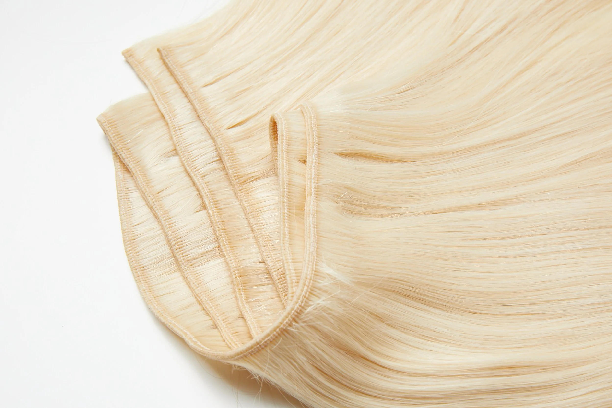 Weft hair extensions can be installed by a professional stylist using a safe sew-in method. Crafted from thick double density hair, the weft looks full and glamourous from root to tip — giving you both the volume and length of your dreams.